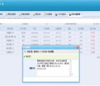 4、查询统计:主要包括了今日交租查询[可在短信模板设置发送短信的手机号,在中国网建购买短信之后,这里可以直接给租客发送交租提醒的短信]、本月交租查询、未租房屋查询、已租房屋信息查询、租客合同到期查询。