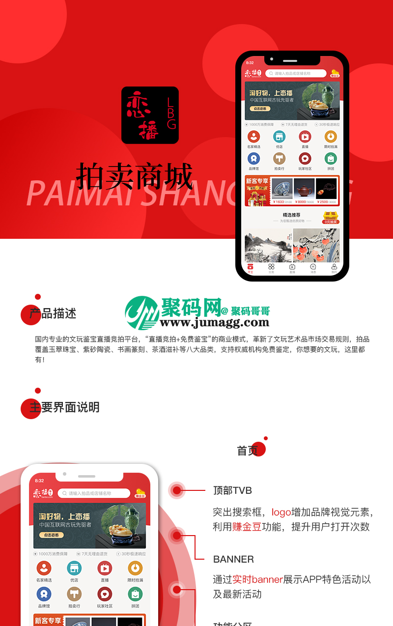 本款系统支持端口:小程序、公众号、APP等多端环境。支持书法绘画竞拍、古玩古董竞价、海报书法拍卖专用系统